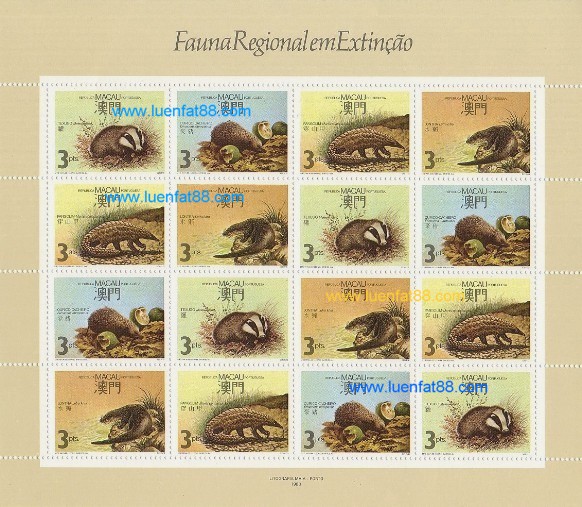 澳門 "瀕臨絕種動物" 小版張