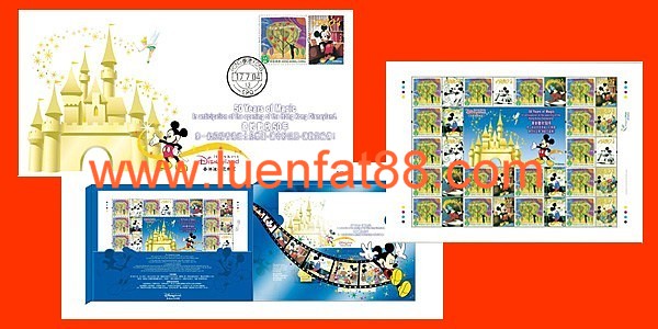 香港迪士尼樂園金輝慶典紀念郵票小版張及徽章套裝