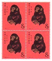 T.46: 1980年生肖猴郵票4方連(4枚)。現售價是港幣 HK$-。