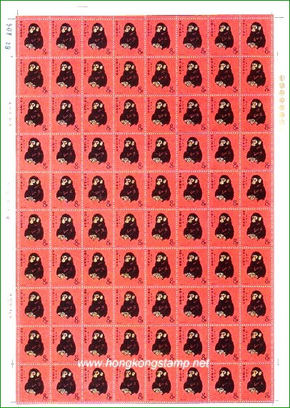 T.46: 1980年生肖猴郵票每版(80枚)面值是人民幣6.4-。現售價是港幣 $-。收購價是港幣HK$-。