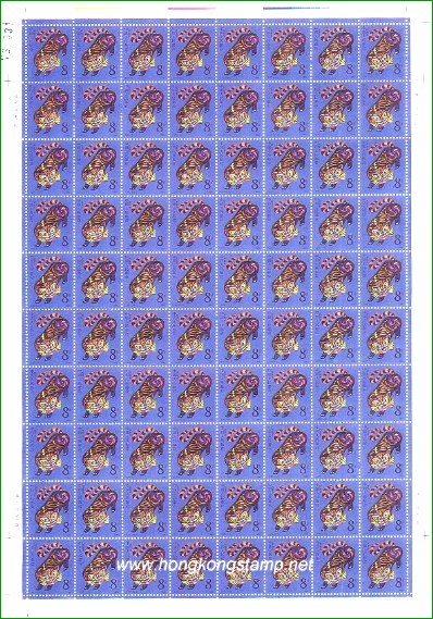 T.107: 1986年生肖虎郵票每版(80枚)面值是人民幣6.4-。現售價是港幣 $-。收購價是港幣HK$-。 第二輪.... 選購 查詢....