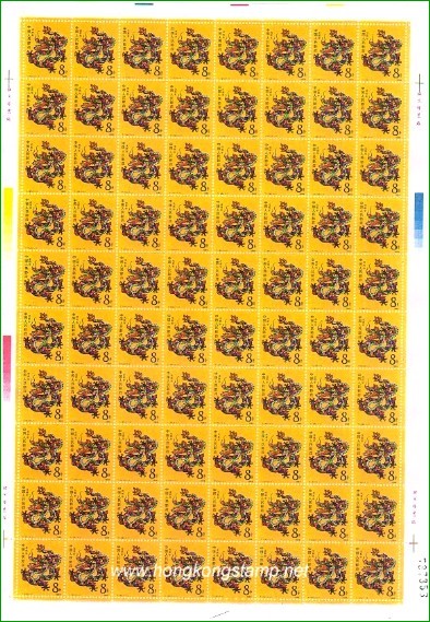 T.124: 1988年生肖龍郵票每版(80枚)面值是人民幣6.4-。現售價是港幣 $-。收購價是港幣HK$-。 第二輪.... 選購 查詢....